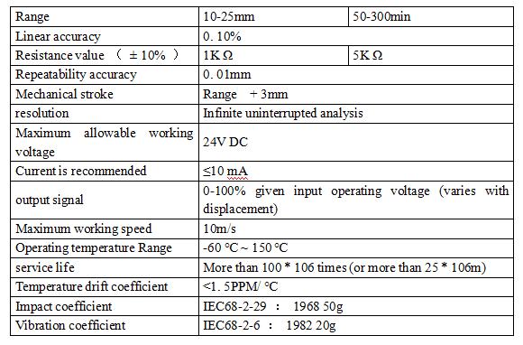 Performance parameters of displacement sensor