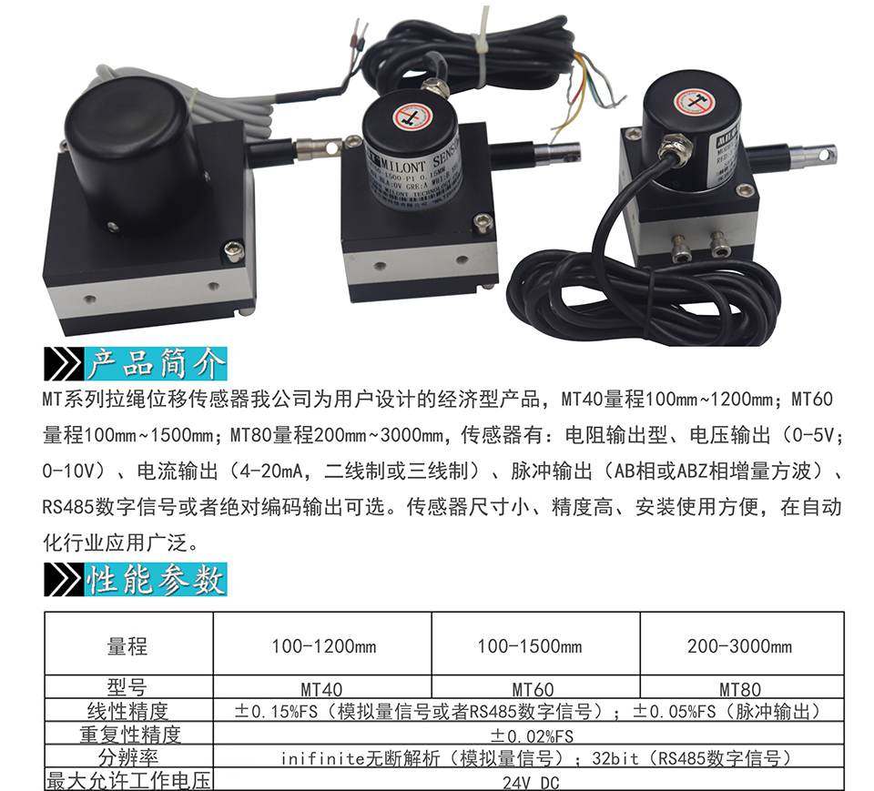 米蘭特MT拉繩位移傳感器安裝比較簡(jiǎn)便,主要用于各類自動(dòng)化機(jī)械設(shè)備位移測(cè)量與位置定位。