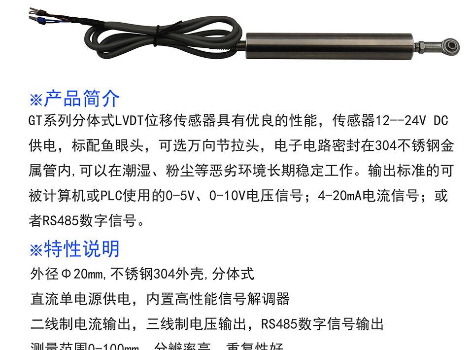 米蘭特GT系列分體式LVDT位移傳感器,主要應用于液壓缸定位、水泥行業(yè)、橋面移位檢測、閥門位置檢測與控制、機床及工具定位、地鐵隧道工程防護等領域。